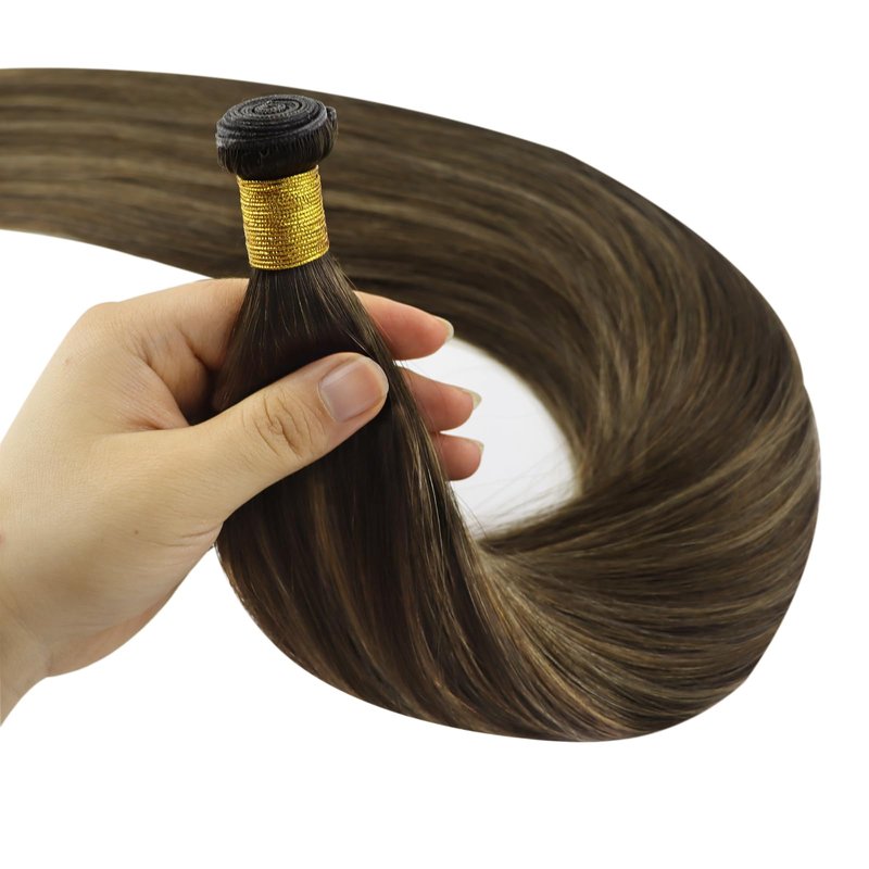Full Shine Genius Weft Human Hair Extensions Hand Tied Weft Hair Extensions Ombre Hair Extensions Sew In Balayage Darkest Brown To Light Brown Mix Darkest Brown Soft Straight Human Hair 16 Inch 50G