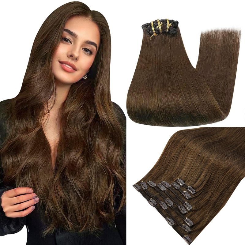 - Various Options: #4 Medium Brown, 18 inch, 120 g; our real human hair clip in extensions cater to various hair needs; for a full-bodied look, use two packs or pair with our 3 pcs clip hair extensions; complete set weighing 150-200 gram, making it easy to achieve your desired style