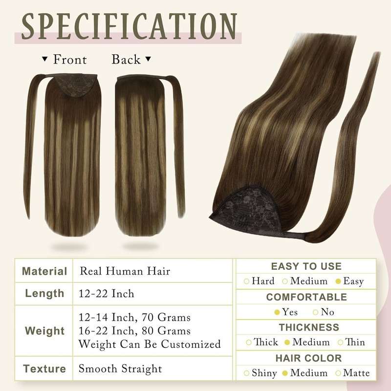 Size And Weight: We Have 12inch - 70g, 14inch - 70g, 16inch - 80g, 18inch - 80g, 20inch - 80g And 22inch - 80g Ponytail Hairpiece. Good For Adding Fullness And Length.