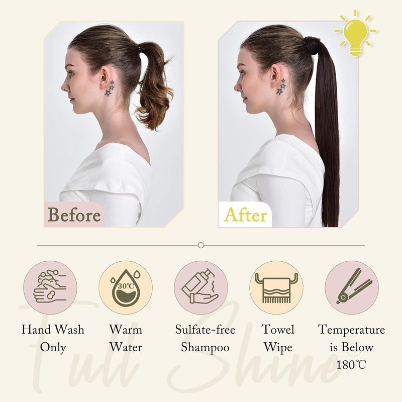 1.Brush Gently: Always Use A Wide-Toothed Comb Or a Special Hair Extensions Brush To Detangle Your Ponytail Extensions. 2. Moisturize Regularly: Use A Sulfate-Free And Alcohol-Free Conditioner To Keep Your Ponytail Extensions Soft And Shiny.