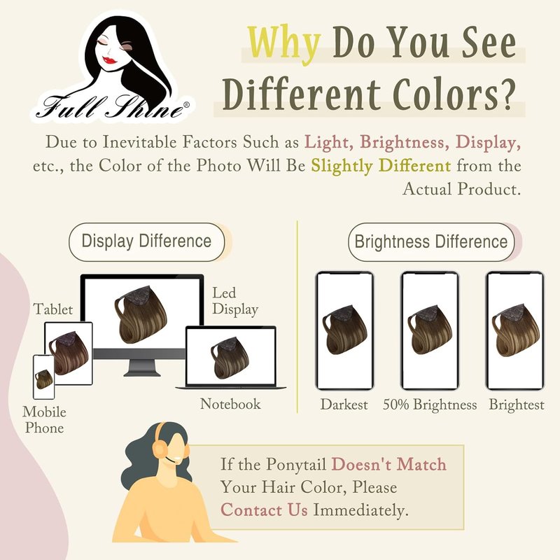 - [Color Selection]When Choosing The Ponytail Extension, Take The Hair Color At The Root Of Your Ponytail Bundle As The Selection Criterion.All Photos Are Taken By Full Shine, There Will Be A Bit Of Different About The Color, Because Of The Light And Display Equipment Are Different.If You Need Help To Choose A Color, We Could Recommend You A Suitable Color.