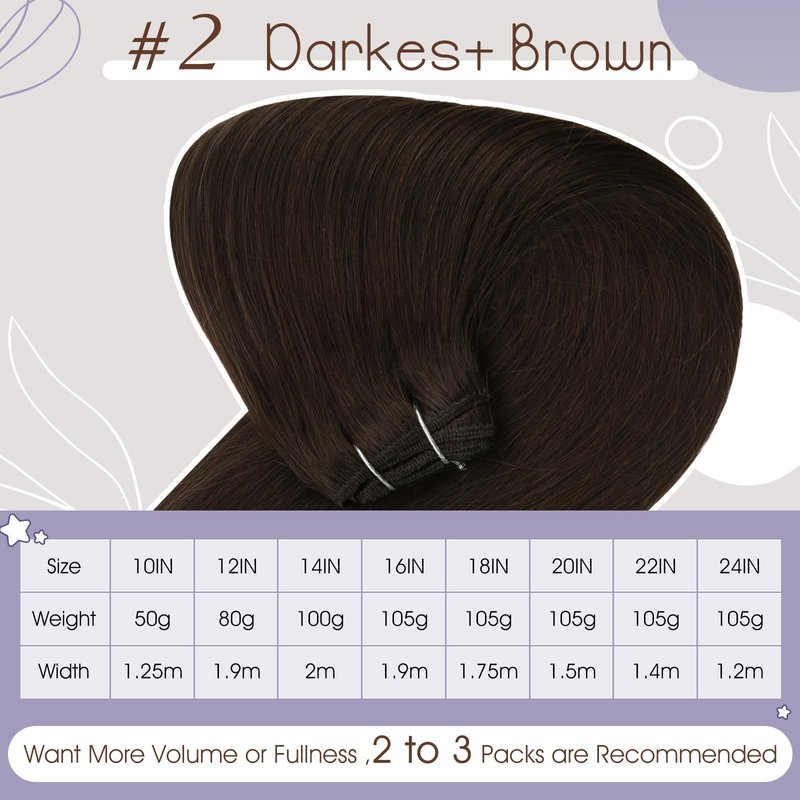 Full Shine Sew In Hair Extensions Real Human Hair 22 Inch Weft Extensions Real Remy Hair Color #2 Dark Brown Double Weft Full Head Set Straight Hair Weaves 105 Grams Hair Weft Bundles Straight Hair