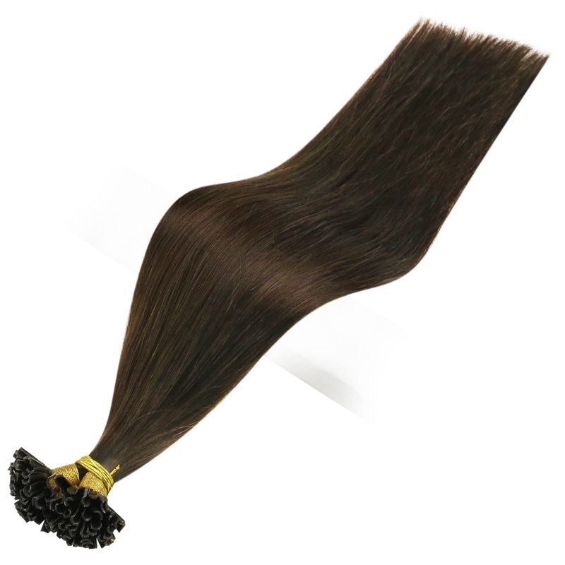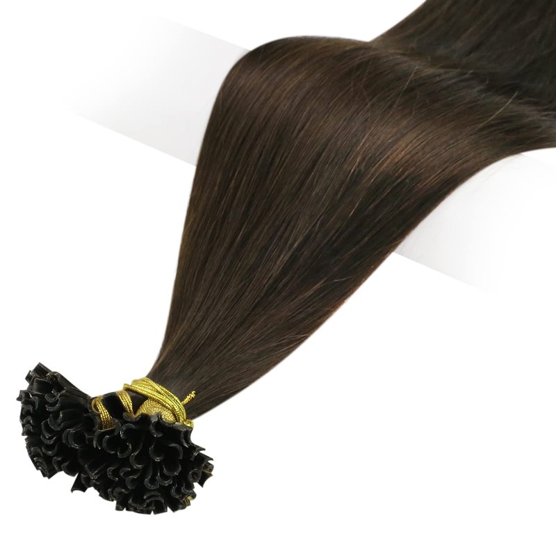 Full Shine U Tip Hair Extensions Human Hair 16 Inch Fusion Extension Human Hair U Tip Color 2 Darkest Brown Remy U Tip Hair Extensions 50g/50s Keratin U Tip Hair Extensions 1 Gram Per Strand