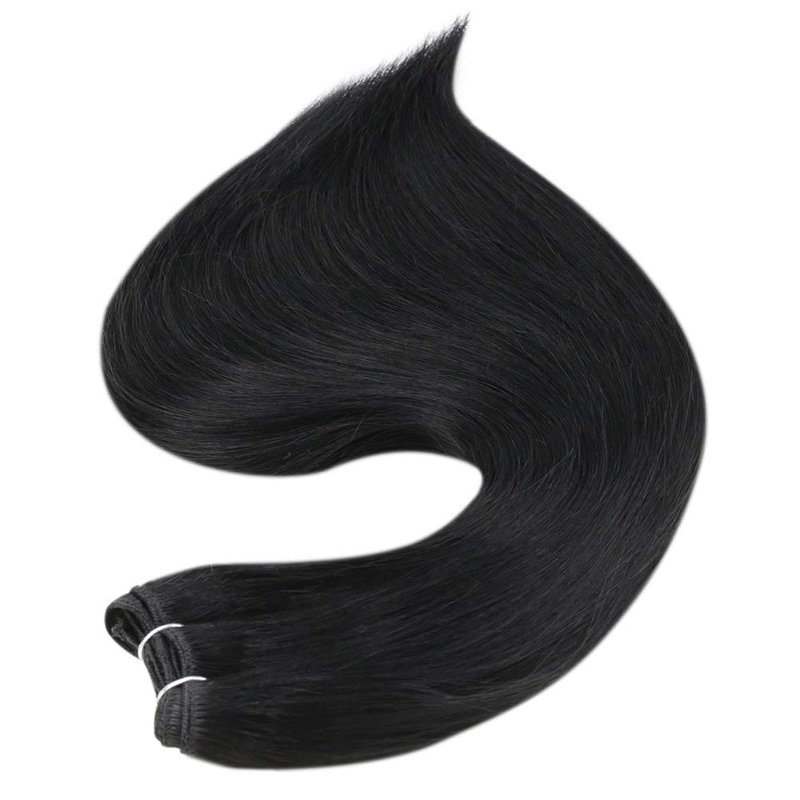 Full Shine Weft Hair Extensions Human Hair Black 18inch Jet Black #1 Human Hair Weft Bundles Natural Black Remy Human Hair Extensions Double Weft 105G