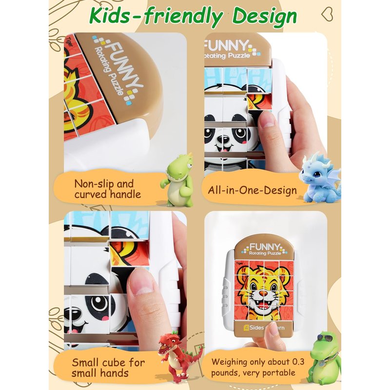 🚀Upgrade to the 16-piece Rotating Puzzle - Compared to the 9-piece version designed for preschoolers, this 16-piece version offers increased difficulty, making it enjoyable for school-aged children and even adults. It provides greater playability, more interesting patterns, and better helps in developing various skills in children. ✈️A Handy Toy for Outings - Whether in the car or at a restaurant, our compact Rotating Puzzles can be carried along and it keeps children quiet and occupied. Moreover, there is no risk of missing pieces after playing with this all-in-one design puzzle! 🖐️Finger Dexterity Training - Children need to engage multiple fingers in the rotation of 16 small cubes, which demands fine motor skills and hand-eye coordination. And Restoring the 4 similar patterns exercises children's image cognition and logical thinking. Certainly, it also fosters patience and concentration. 🌟Safe & Durable - Made of non-toxic and durable materials. Unlike paper puzzles, it won't easily break or tear. The puzzle also offers a smooth playing experience without any uneven edge fit like the paper one. 💖Great Gift for Boys and Girls - This rotating puzzle toy is fun, educational, portable and durable. Children will enjoy playing with it continuously. It's a perfect gift for their birthdays or Christmas!