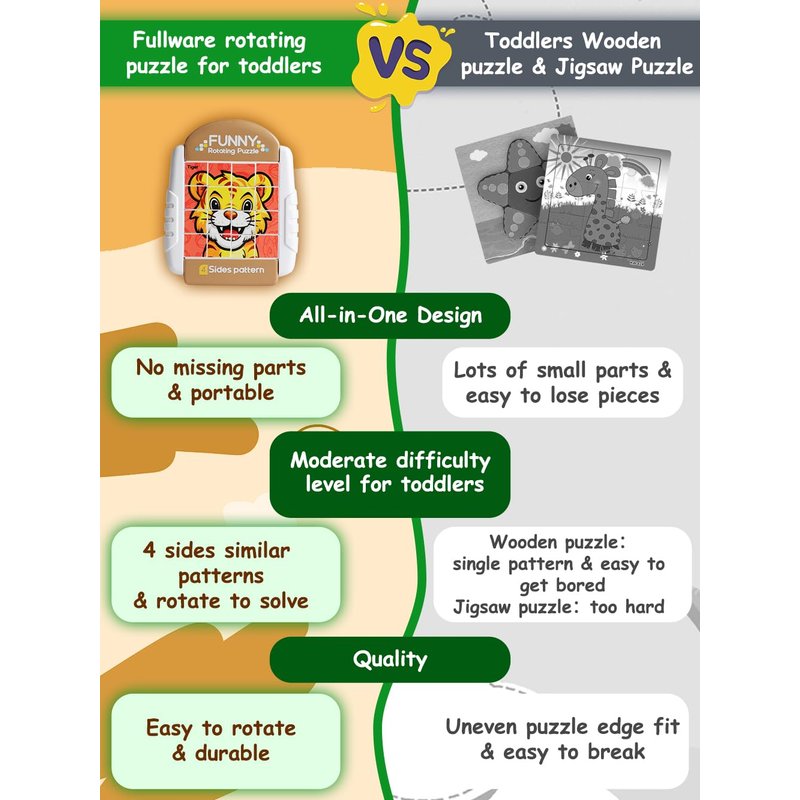 - A HANDY TOY FOR OUTINGS - Whether in the car or at a restaurant, our compact Rotating Puzzles can be carried along and keep children quiet and occupied. Moreover, there is no risk of missing pieces after playing with this all-in-one design puzzle!