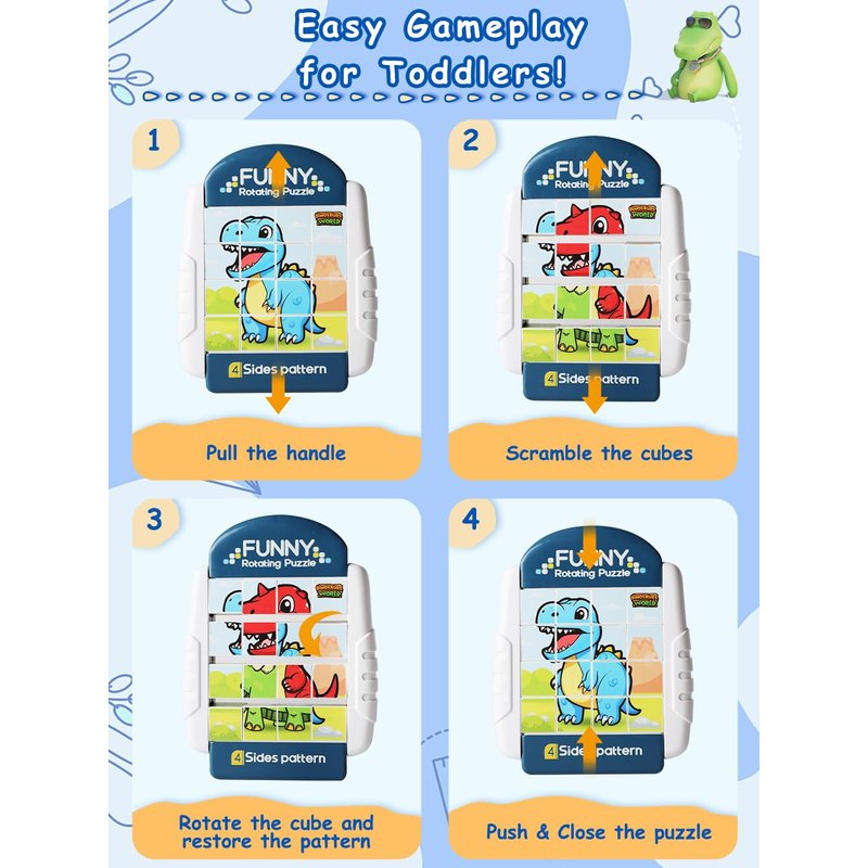🚀Upgrade to the 16-piece Rotating Puzzle - Compared to the 9-piece version designed for preschoolers, this 16-piece version offers increased difficulty, making it enjoyable for school-aged children and even adults. It provides greater playability, more interesting patterns, and better helps in developing various skills in children. ✈️A Handy Toy for Outings - Whether in the car or at a restaurant, our compact Rotating Puzzles can be carried along and it keeps children quiet and occupied. Moreover, there is no risk of missing pieces after playing with this all-in-one design puzzle! 🖐️Finger Dexterity Training - Children need to engage multiple fingers in the rotation of 16 small cubes, which demands fine motor skills and hand-eye coordination. And Restoring the 4 similar patterns exercises children's image cognition and logical thinking. Certainly, it also fosters patience and concentration. 🌟Safe & Durable - Made of non-toxic and durable materials. Unlike paper puzzles, it won't easily break or tear. The puzzle also offers a smooth playing experience without any uneven edge fit like the paper one. 💖Great Gift for Boys and Girls - This rotating puzzle toy is fun, educational, portable and durable. Children will enjoy playing with it continuously. It's a perfect gift for their birthdays or Christmas!