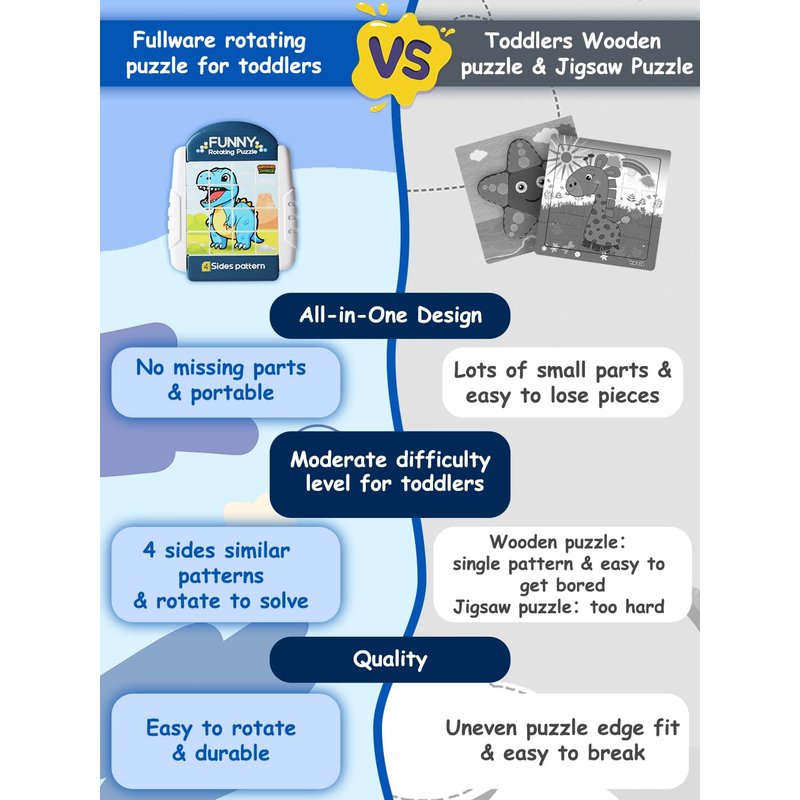- A HANDY TOY FOR OUTINGS - Whether in the car or at a restaurant, our compact Rotating Puzzles can be carried along and keep children quiet and occupied. Moreover, there is no risk of missing pieces after playing with this all-in-one design puzzle!