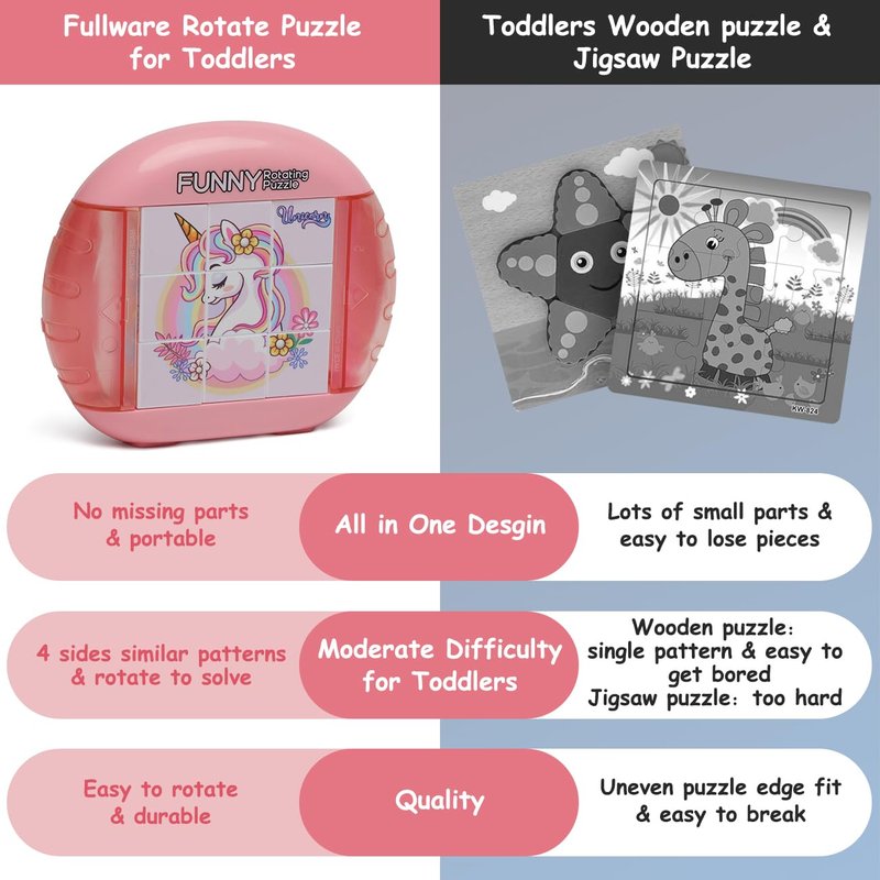 - PUZZLES FOR PRESCHOOLERS - Our Rotating Puzzle features 4 similar patterns, all children need to do is to rotate 9 cubes to restore patterns without putting too many puzzle pieces. Its difficulty level is suitable for preschoolers.