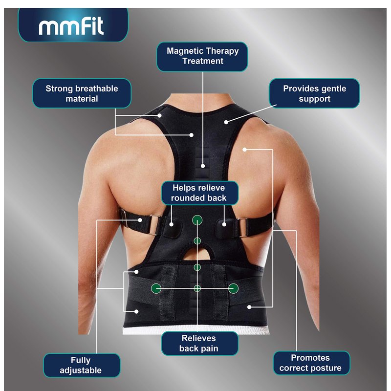 - 👍 MAGNETIC THERAPY - Unlike standard corrector devices, mmFit magnetic Posture Corrector uses an ancient magnetic therapy to address posture concerns. This therapeutics technique has long been used across the world to provide numerous benefits including: Soothing sore muscles and joints Improving circulation Relieving stiffness, pain, and tension