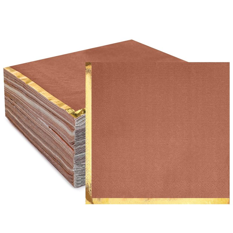 Fulmoon 100 Pack 2 Ply Cocktail Napkins Paper Gold Foil Trim Edge Beverage Dessert Disposable Paper Napkins Dinner Baby Shower Wedding Birthday Party Tableware Decorations, 5 x 5 Inches(Terracotta)