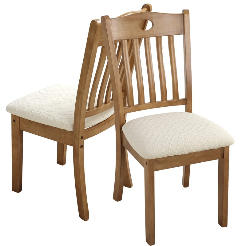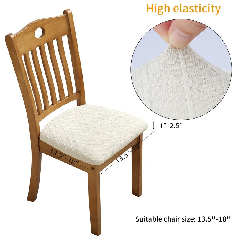 Fuloon Stretch Jacquard Chair Seat Covers Set of 6, Removable Washable Dining Chair Covers Anti-Dust Dining Room Chair Covers Seat Cushion Slipcovers (6, Beige)