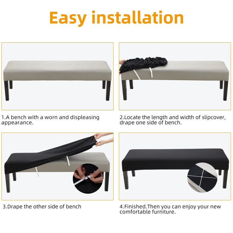 - Easy to Use: Stretch dining room bench cover comes with elastic straps and 4 buckles, sewn-in elastic hem for a secure fit that won't shift or move; Fuloon dining room bench cover is machine washable, tumble dry low, no ironing required