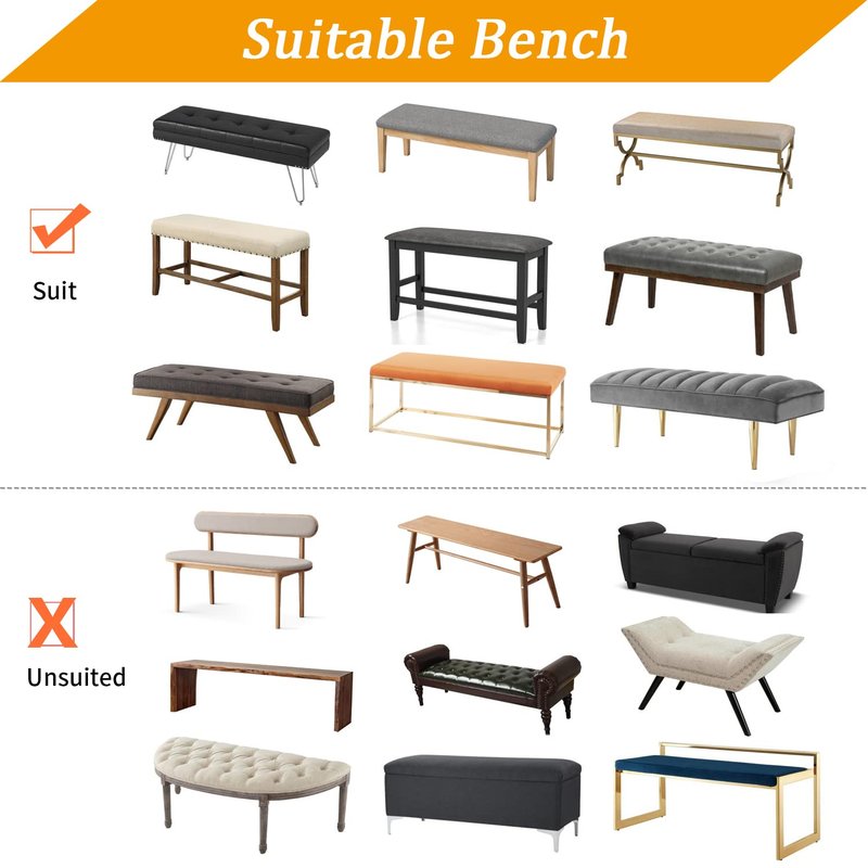 - Suitable for Chair Size: Fits regular size upholstered dining benches from 42'' to 54'' in length, 14'' to 18'' in width, and 3.2'' to 4.7'' in height (please check the size chart in the product image before ordering)