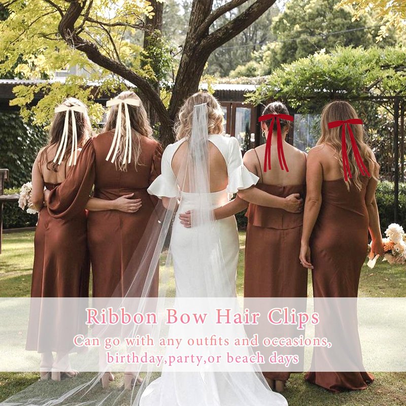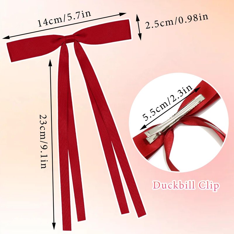 - Size Packaging Content: You Will Get 4pack Bow Hair Clips,with 2 Colors for You to Choose from,Including:Beige&Red.The Length Of Metal Hair Clips Is About 9.1 Inches.Wide 5.7 Inches.The Length Of The Alligator Clip Is About 2.3 Inches.Silk Hair Bow Decor Your Hair Styling Make You Stand Out And Exude Elegant Charm.