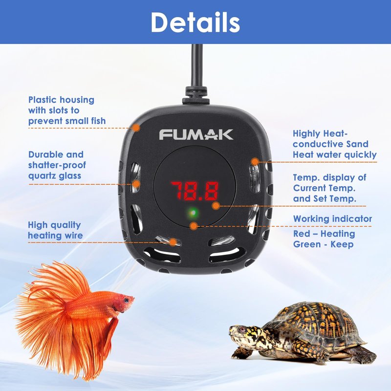 Experience optimal heating with the FUMAK Mini Aquarium Heater Turtle Tank Heater!