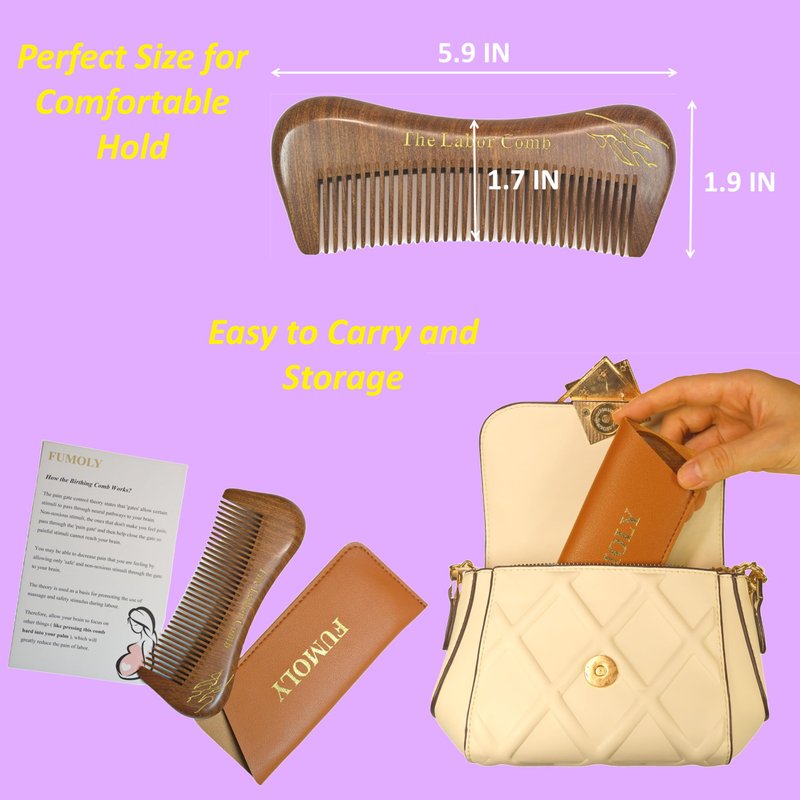 - 【Natural Sandalwood Birthing Comb】Relieve labor pain naturally with the sandalwood birth comb, provide gentle stimulation to distract your mind from contractions. Our ergonomic wooden comb is a must-have essential for labor and delivery. It's a home birth essential you'll use in the big moments, and a doula bag essential for midwives.