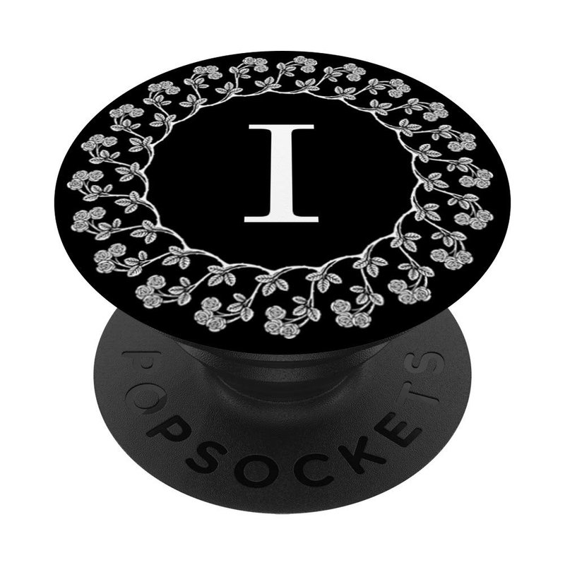 Fun Cell Phone Pop Up Holder,Cute White Floral Rose Letter I PopSockets Grip and Stand for Phones and Tablets