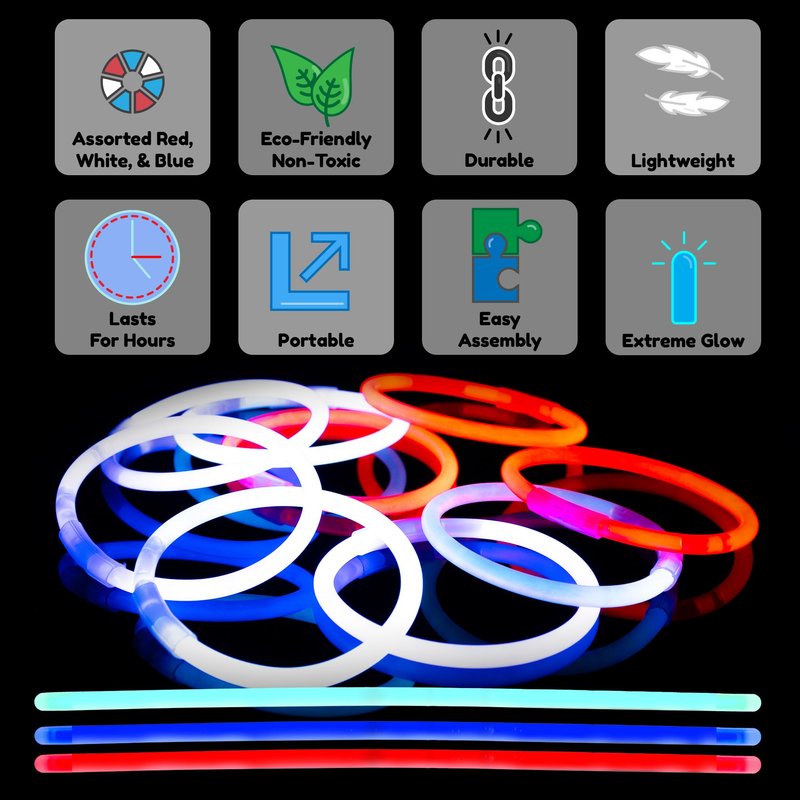 - PERFECT FOR PARTIES: Enjoy Glow sticks by turning them into your kid¡¯s own Glowing Bracelets. These Glow Stick Bracelets can be used in rave parties, neon parties, glow in the dark themed birthday parties, Christmas parties, Halloween parties and other lighted events.