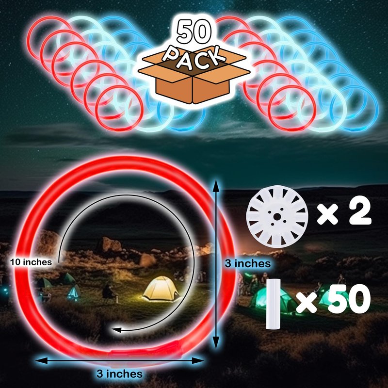 - INCLUDES: Each tube packaging contains: 50 pieces Glow in the Dark Sticks and 50 break away plastic connectors for the Glow Stick Bracelets.