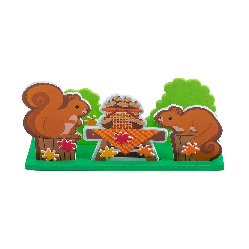 Fun Express 6" x 3 1/4" 3D Squirrels Eating on A Picnic Table Foam Craft Kit - Makes 12