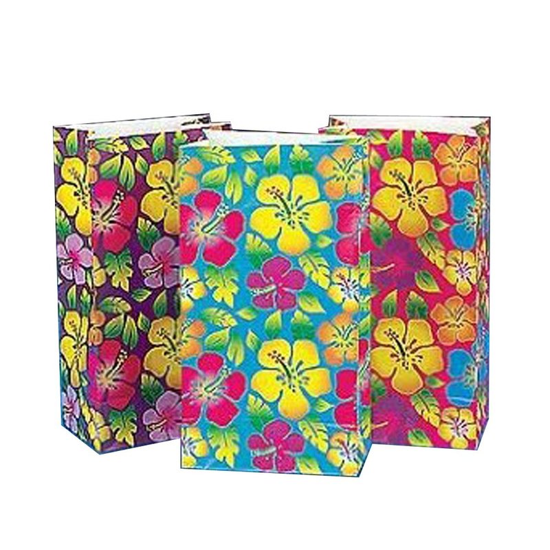 Fun Express Luau Party Supplies Hibiscus Paper Bags (12 Piece)