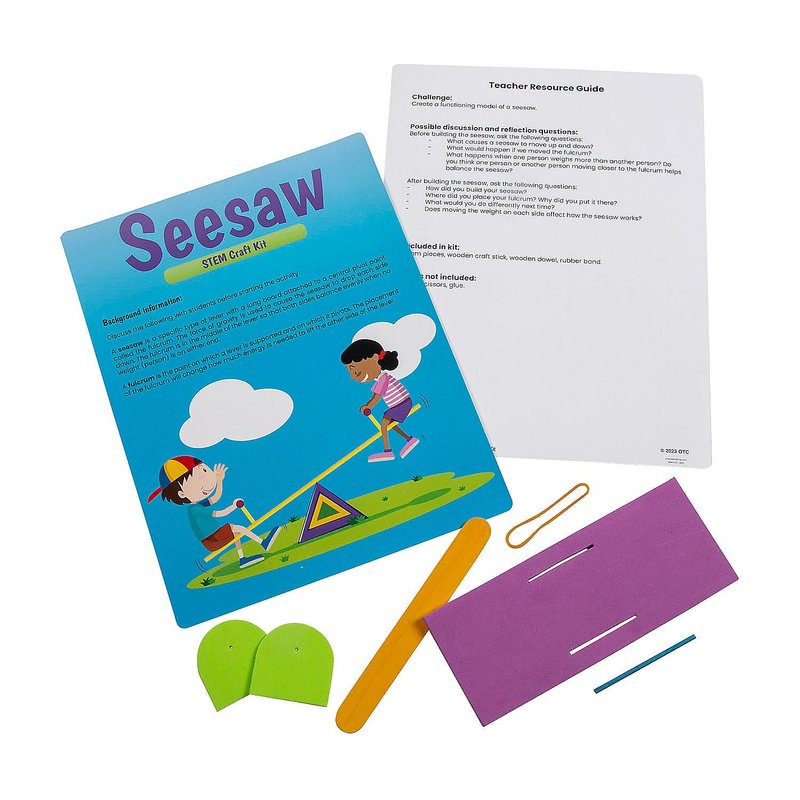 Hands-on STEM activities give students a fun way to learn. This STEM craft kit provides a lesson about seesaws and is a great teaching aide for science topics in the classroom. Students will learn about seesaws, but they also get to practice cooperation and problem solving while working together to assemble the craft project.