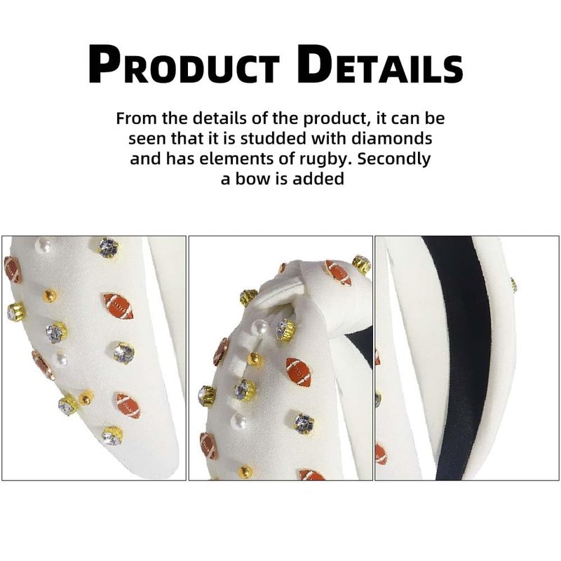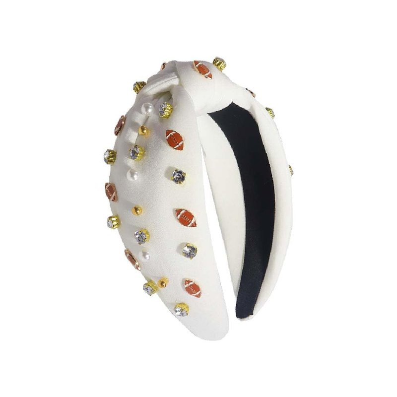Fun Football Headband,Pearl Rhinestone Jeweled Football Charm Knotted Headband,Sports Wide Knotted Hair Band Hair Hoop Headpiece,Game Day Sports Hair Accessories,Gift for Football Fans