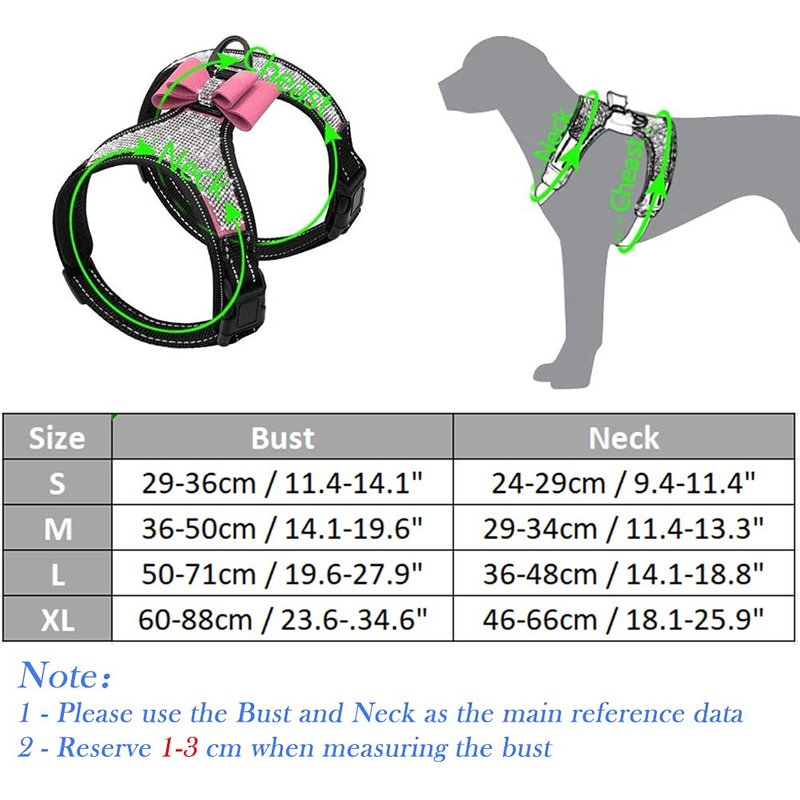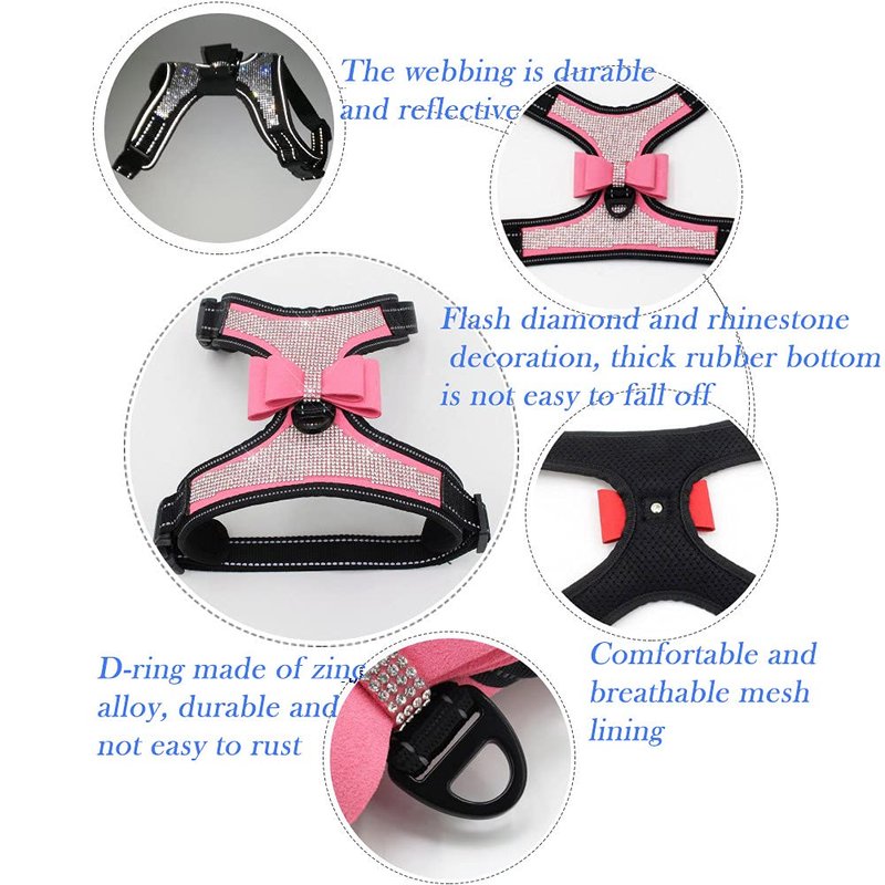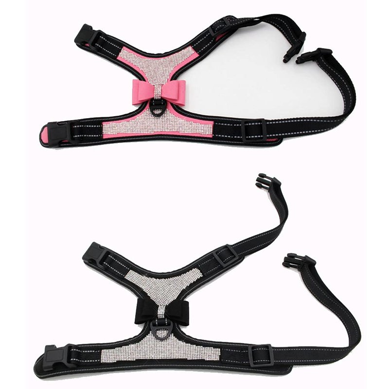FUNAT Reflective Dog Harness with Rhinestone, Cute Bling Ties Dog Harness Dog Leash, Reflective Chest Strap with Shiny Bow