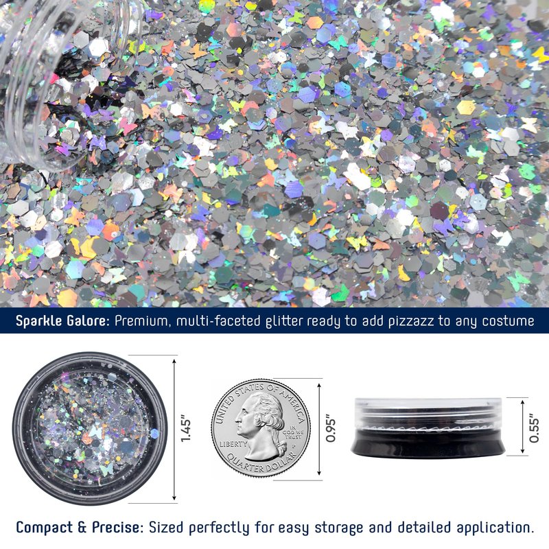 - HEAD-TURNING SPACE GLITTER: Get ready to shimmer and shine with our high-intensity, holographic chunky glitter! Perfect for adding some extraterrestrial glam to your look, whether you're hitting the club or dancing at a festival. Skin and kid-friendly for worry-free fun!