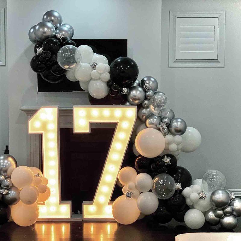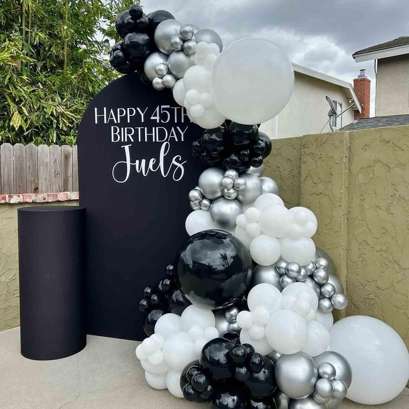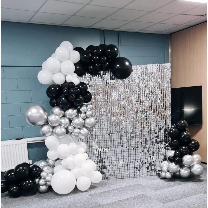 - VARIOUS OCCASIONS - The black and silver balloons decoration is ideal for birthday parties for both girls and boys, baby showers, weddings, anniversaries, graduations, 2024 party decorations, engagements, black-tie events, masquerade balls, and hen party decorations. The silver black helium balloons can serve as a focal point or a decorative element to enhance the atmosphere of any party or event.