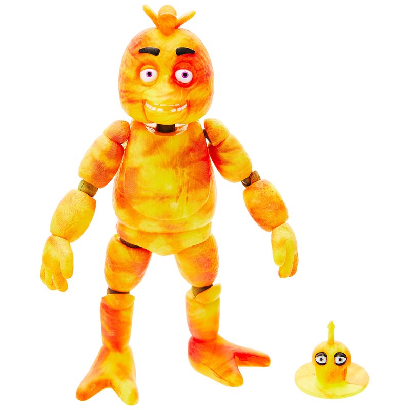 - Survive the night at Freddy Fazbear’s Pizza with a Five Nights at Freddy’s Tie-Dye Chica Action Figure