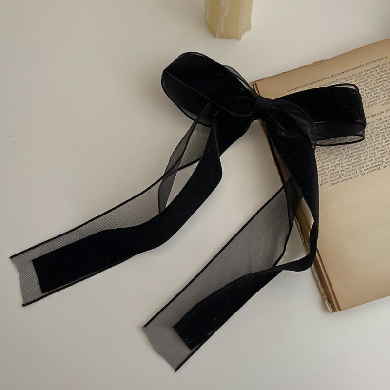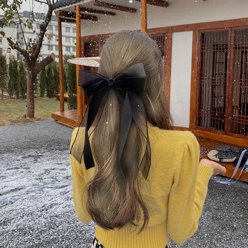 - Beautiful Style: Classic Black Hair Bow Clip. Beautiful Double Ribbon Tail will Look More Elegant Specially with the Tulle Ribbon.