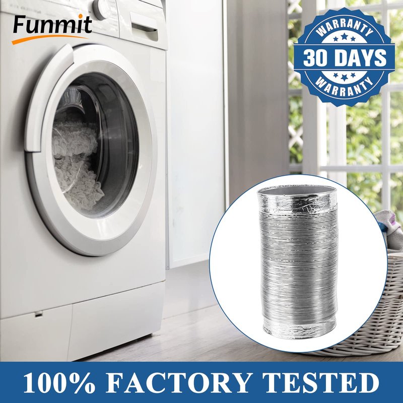Funmit Dryer Vent Hose Kit - 4 In Diameter by 8 Ft Length - with 2 Stainless Steel Worm Clamp - Flexible Universal Aluminum Foil Non-Insulated - Silver
