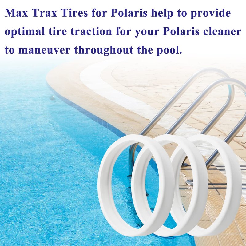 - PREMIUM QUALITY: Pool cleaner all purpose tire is made of premium, heavy duty rubber, has long-lasting durability. And provides optimal tire traction for efficient movement away the pressure-side cleaner throughout the pool, without damage to the pool finish, increasing cleaning efficiency. Works with any pool surface such as plaster, concrete, vinyl, PebbleTec and Marcite pool coatings