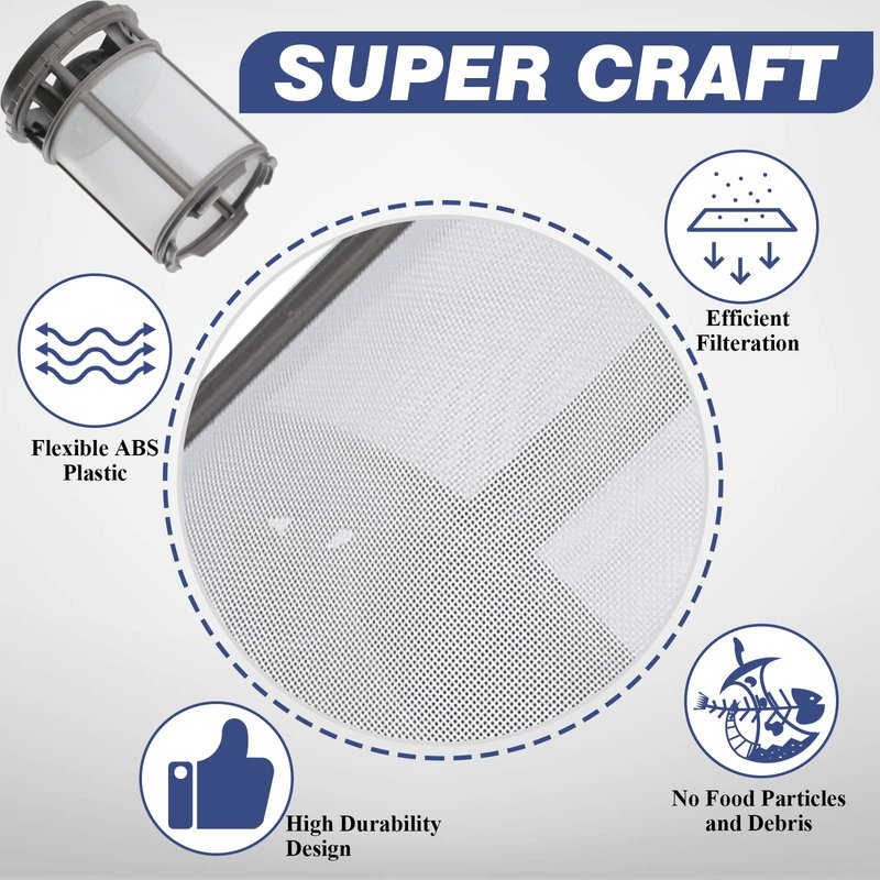 - 𝐒𝐔𝐏𝐄𝐑 𝐂𝐑𝐀𝐅𝐓 - Our updated W10872845 dishwasher pump filter is made of high quality materials. The top and bottom of the filter are made of flexible ABS plastic, durable and not easy to damage. The screen with fine mesh adopts advanced new polymer material that ensures the maximum filtration effect. The complete kit is inspected by the manufacturer before leaving the factory to ensure safety and long-term use
