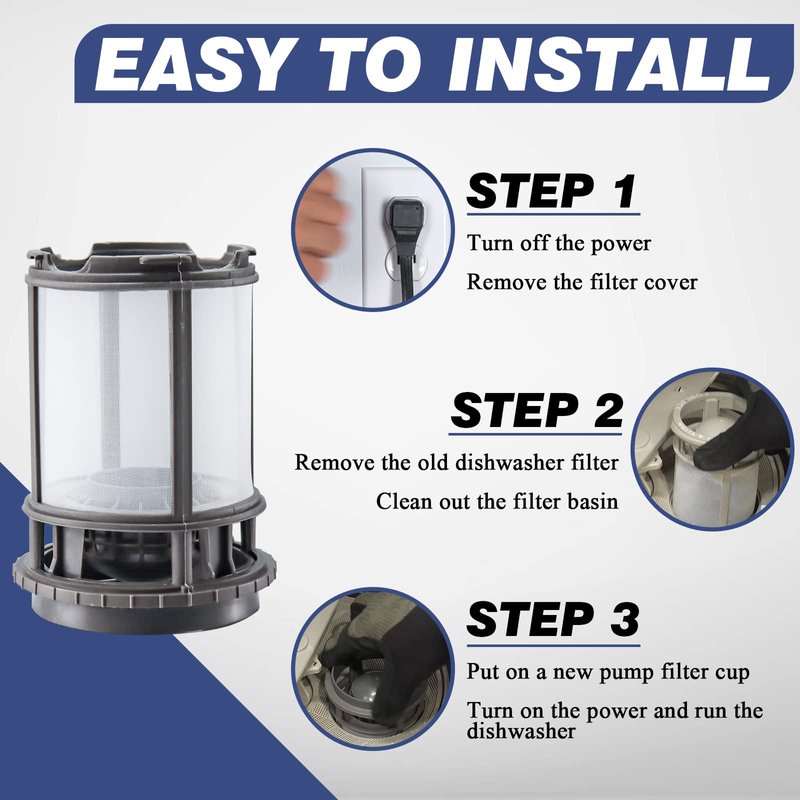 - 𝐄𝐀𝐒𝐘 𝐈𝐍𝐒𝐓𝐀𝐋𝐋𝐈𝐎𝐍 - No tools required for easy and quick repair. Simply open the lid of the dishwasher, pull out the old pump filter cup and insert the new one in the right place. Note: Please disconnect the power and water supply of the dishwasher before starting repair to ensure personal safety