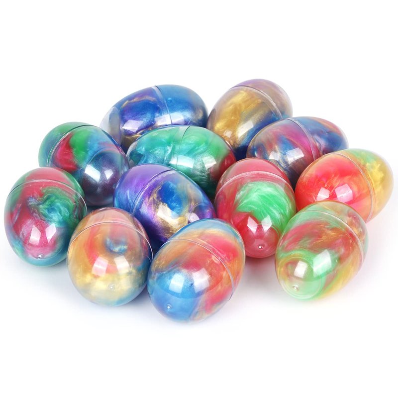 Each package includes 12 pack fluffy galaxy slime Easter eggs with accessories, measured size is 1.8"W x 2.6"H. The large