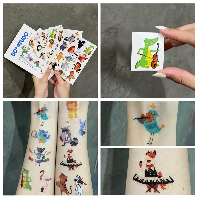 - ANIMAL MUSIC PARTY DECORATIONS: 4 sheets animal temporary tattoos stickers with 55 different patterns, variety of themed characters bring many interesting times, meet your decoration needs.