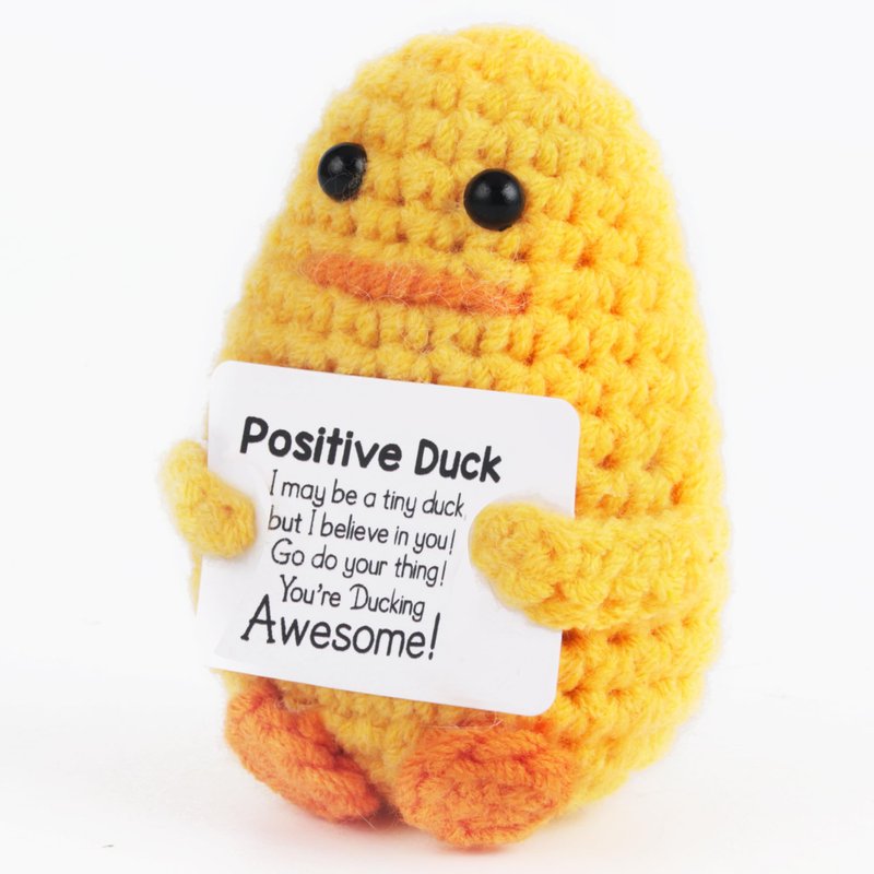 - FUNNY STUFF:Our funny positive duck knitted doll is very cute, and the words in the card are inspirational. Whether you're a lover of life, or just plain frustrated, having a piece of positive encouragement stuff, will make you feel better about yourself. Whether you love life, or you're just a little down in the dumps with this positive encouragement stuff, you'll be cheered up. new beginning gifts for coworkers colleagues women men.duck desk office decor for coworkers women employees,emotional support nuggets partner