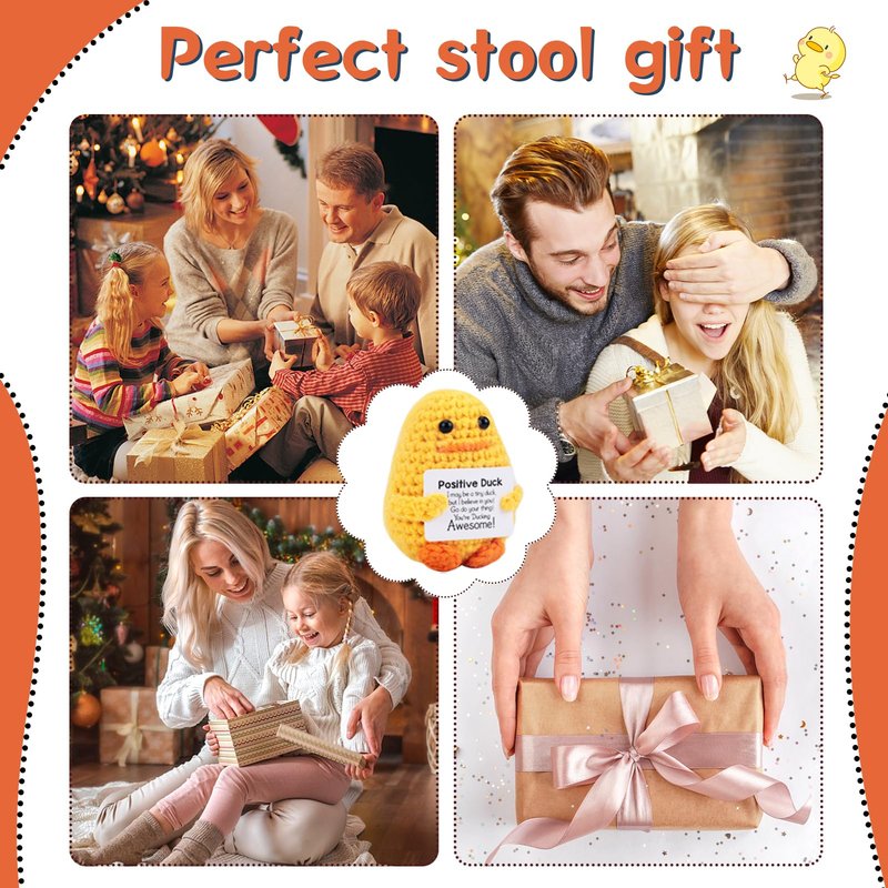 - INSPIRATIONAL AFFIRMATION CARDS:You will receive positive potato partner-funny knitted positive duck with a card which is printed encouraging words.This is undoubtedly a 2023 unique mini cute item.Funny going away gifts new beginning gifts for colleagues.cute duck stuff for women girls daughter friends.Funny office decor for women men,Cute car desk decor for coworkers farewell gifts for coworkers,Positive cheer up gifts for friends,emotional support nuggets partner birthday gifts