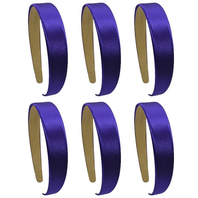 Funny Girl Designs Satin Headband SET OF 6 1 Inch wide Satin Fabric Lined Arch Style Headbands (PURPLE)