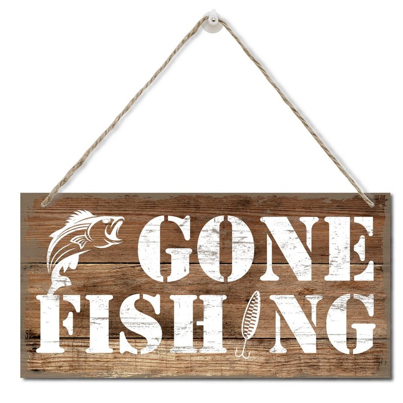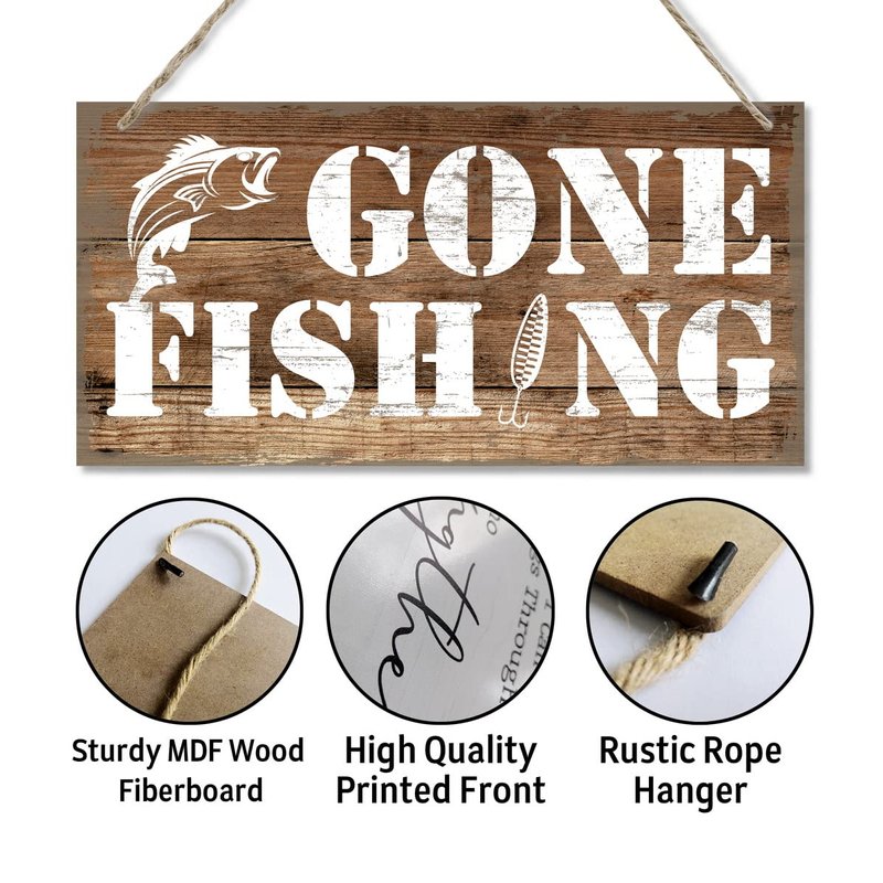 Funny Gone Fishing Wall Decor Sign, Printed Wood Plaque Sign, Hanging Fishing Decor Sign, Family Signs for Home Decor Gift, Gifts for Men, Farmhouse Decor Wall Art Sign 12" x 6"