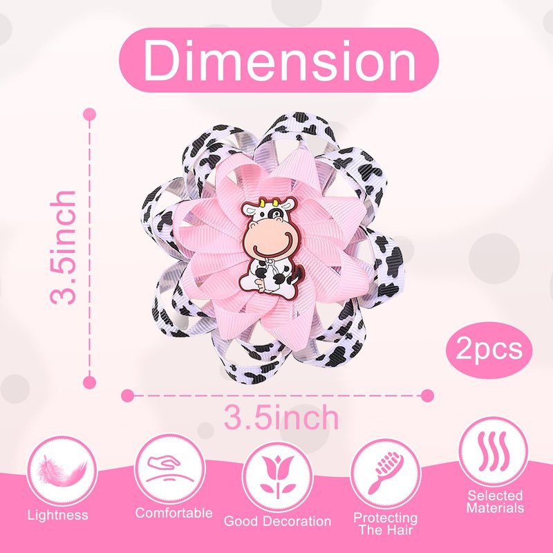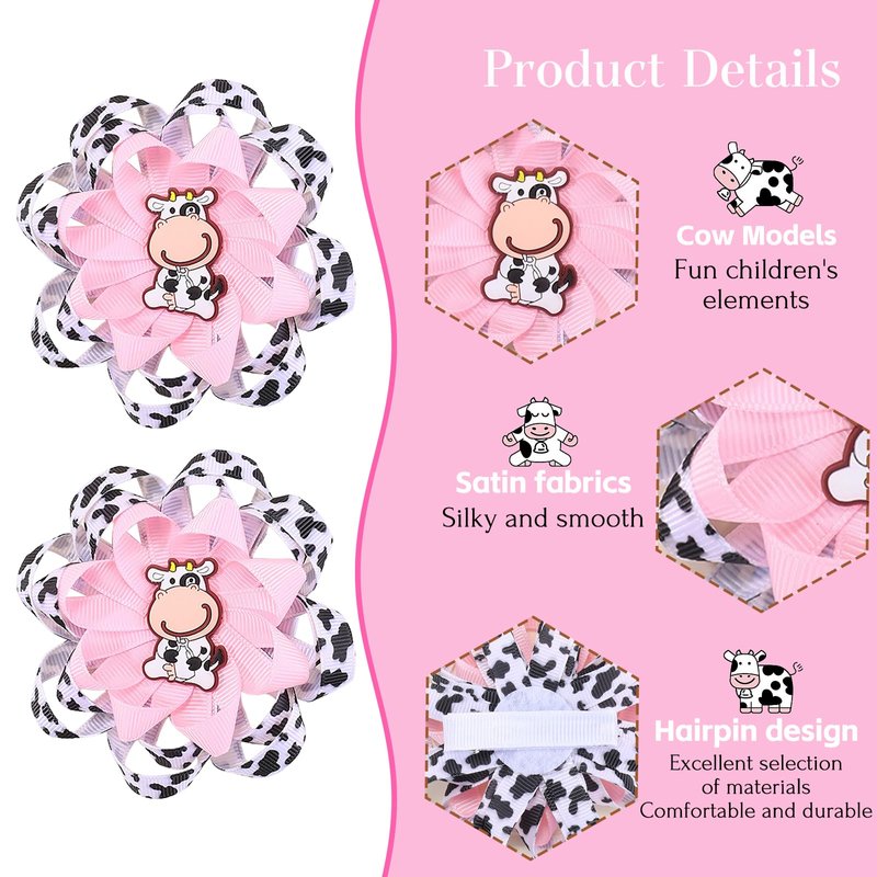 Funny Moo Cow Hair Clips Cute Cow Print Hair Clip White Pink Curly Flower Hair Pins Bowknot Grosgrain Ribbon Hair Alligator Clips Toddler Girl Hair Accessories for Baby Shower Party 2Pcs