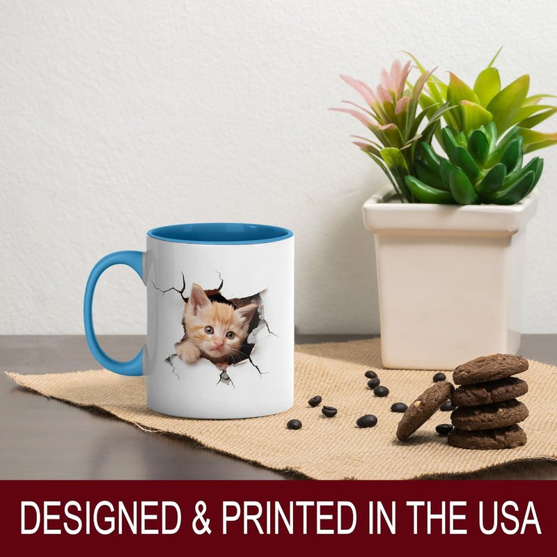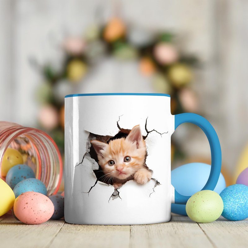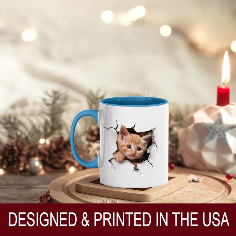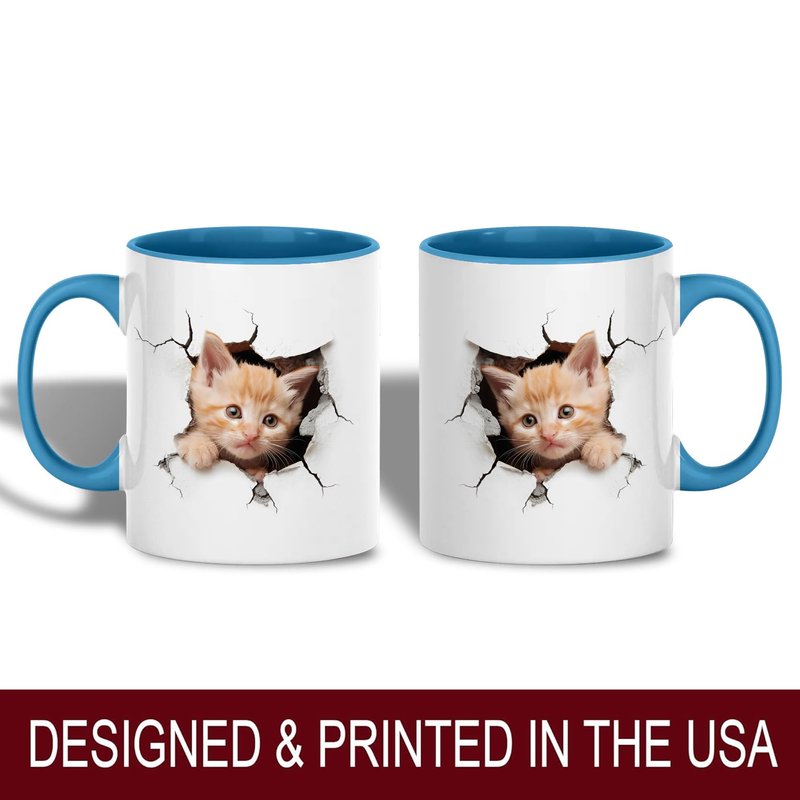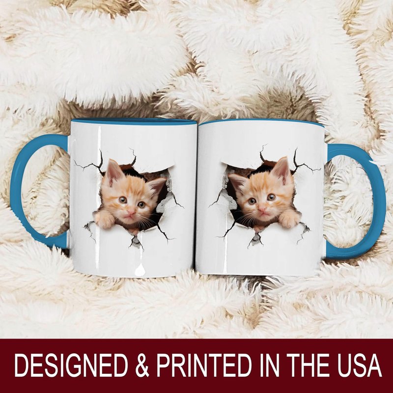Funny Orange Kitten Cracking Wall Ceramic Mug, 11oz Coffee Cup for Cat Lovers, Animal-Themed Tea Mug, Unique Gift for Birthday, Office, or Home, Reusable Eco-Friendly Mug for Hot Beverages, Milk, Tea