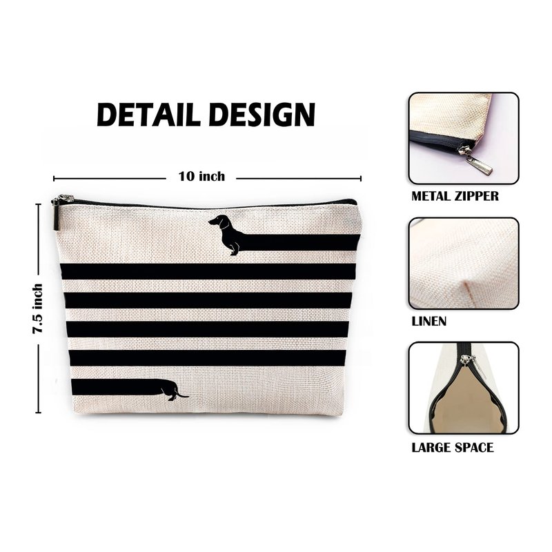 Funny Very Long Dachshund Dog Makeup Bag, Funny Sausage Dog Lovers Cosmetic Pouch for Women Girls, Christmas Birthday Gifts for Dachshund Moms Owners Women Girls