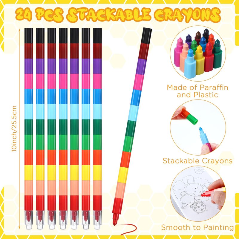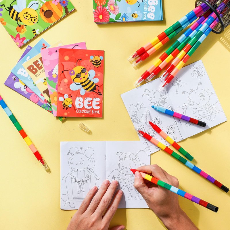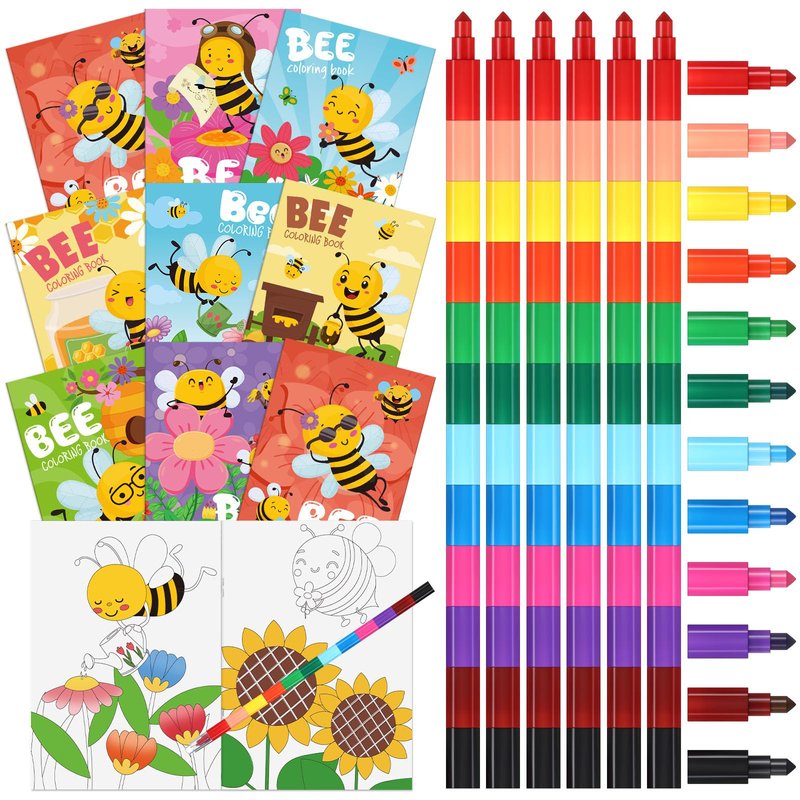 - Package Content: the package includes 24 pieces of bee themed coloring books and 24 pieces of stacking crayons; The bee drawing books bulk contain 8 different cover patterns with 3 copies of each design; The complete coloring book set, and ample quantity can directly satisfy your kids' coloring needs