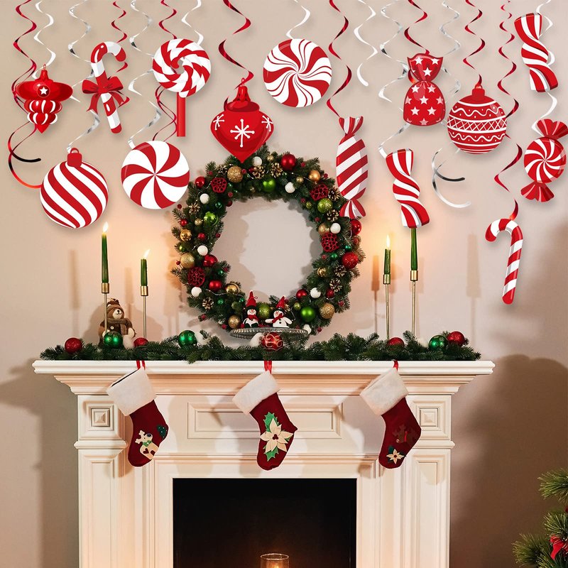 - Wide Applications: these party swirl streamers decorations are nice for Christmas, winter holiday decorations, Christmas party favors, winter home party events; Each candy card comes with a ribbon, you can hang it on the ceiling, windows, mantels, doorways, arches, tree branches and more, suitable for ceilings and doorways, these hangings will be your Christmas decorations