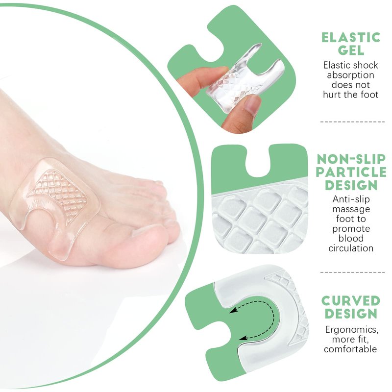 The gel foot pads are designed with u shapes, which can nicely fit the calluses on your bottom feet.