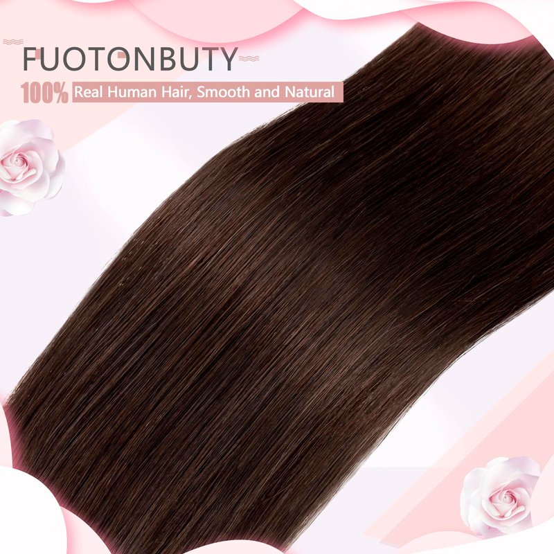 FUOTONBUTY 1 Pcs Short Hair Extensions Clip in 6 Inch Dark Brown to Black Hairpiece Human Hair Toppers for Women With Thinning Hair Adding Hair Volume